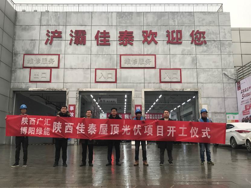 2020年1月15日上午9時,由博陽綠能投資的陜西廣匯汽車4S店屋頂光伏電站正式開工建設。博陽綠能國內業務總監、項目交付總監、陜西廣匯的相關領導及現場施工單位的負責人共同參加了開工儀式。